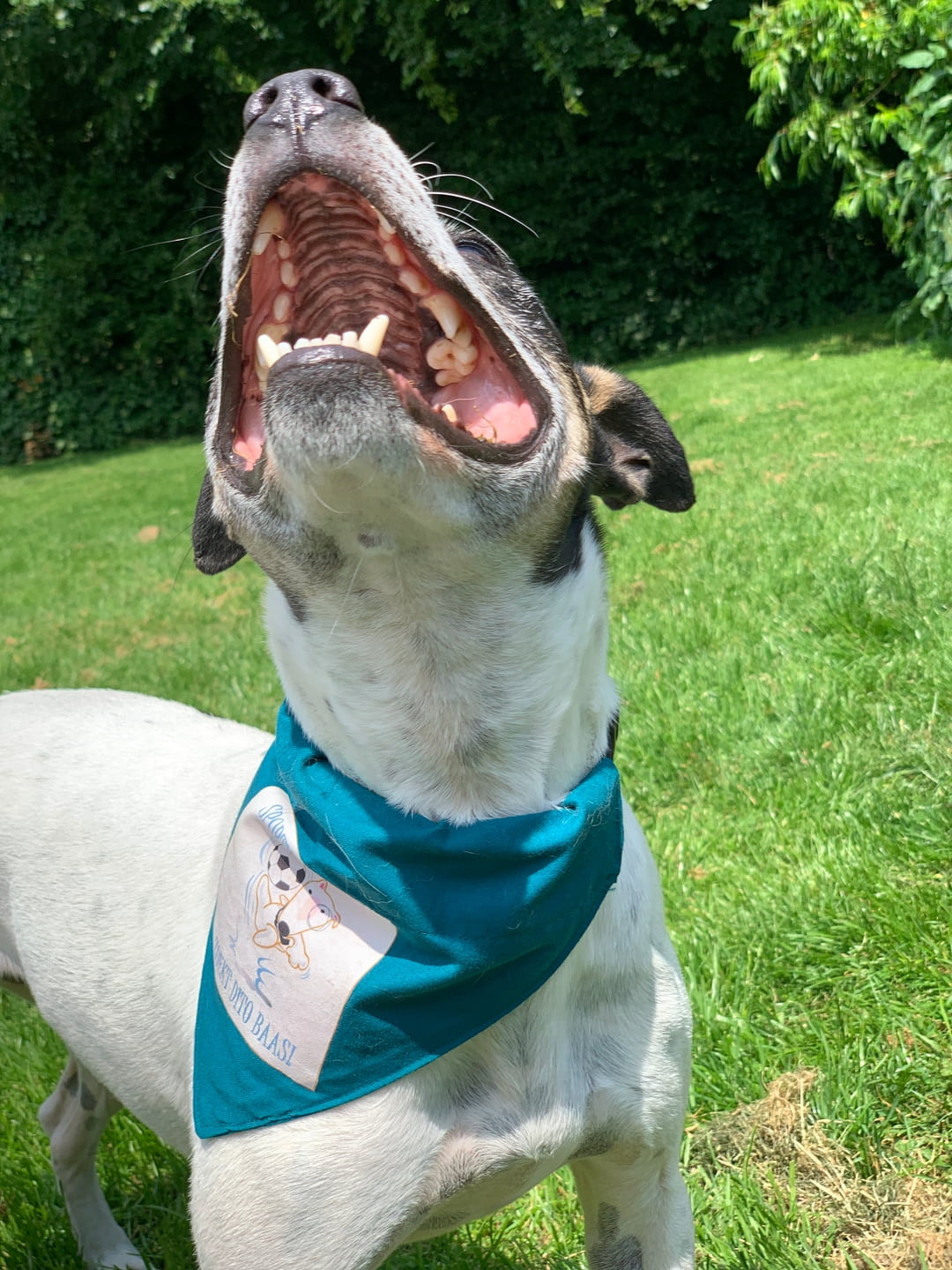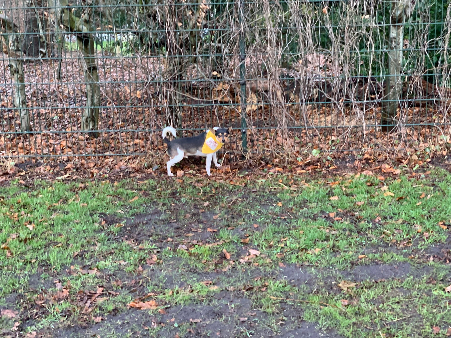 In Roemenie als pup met nestgenootjes gevonden en in het asiel opgegroeid. Als slecht gesocialiseerde puber gereisd. Van het bange hondje dat niets kende heeft ze afgelopen jaren veel geleerd. Juci loopt bij haar opvangvrouwtje op rustige plekken zelfs los en heeft geleerd dat vuurwerkgeknal worst betekent. Maar haar opvangvrouwtje heeft zelf geen auto en hoewel Selwerd Groningen een groene wijk is, is het ook een drukke wijk met veel prikkels. Een wat rustigere wandelomgeving zou voor Juci fijner zijn. Juci kan overigens wel prima mee met de auto en associeert dat met leuke wandelingen. Met kinderen is Juci niet bekend en het is geen hondje voor een kindergezin.